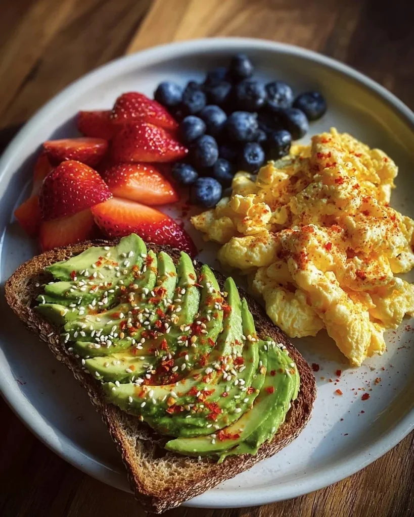Avocado Toast Power Plate with Fluffy Eggs & Berries is a delicious and nutritious meal that provides a great start to your day. This dish combines creamy avocado, fluffy eggs, and fresh berries, making it a colorful and healthy breakfast or brunch option. It’s quick to make and packed with vitamins, healthy fats, and protein, keeping you full and energized.