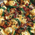 Cheesy Ravioli with Spinach, Mushrooms, and Sun-Dried Tomatoes