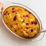 Fold in nuts, dried fruit, or fresh berries if using. Pour the mix into the prepared dish and spread it evenly.