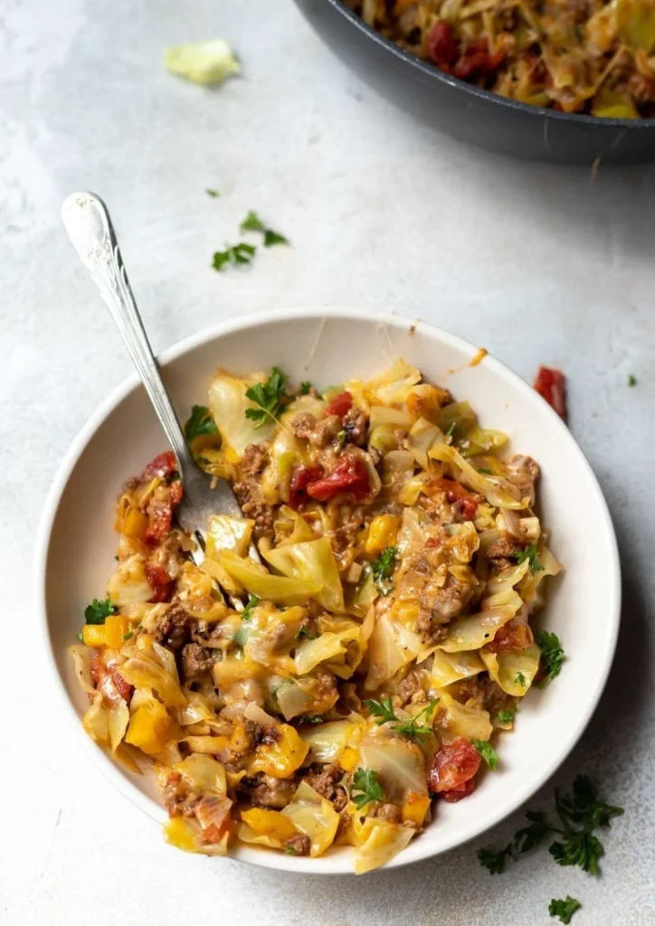 This low carb unstuffed cabbage casserole makes a simple weeknight meal and keeps well for later. If you want a similar recipe with a slightly different approach, see the UNSTUFFED CABBAGE CASSEROLE – WonkyWonderful for another version. For a low-carb deconstructed style, check Low-Carb Deconstructed Stuffed Cabbage Casserole – Kalyn’s. For a quick skillet option try the Keto Unstuffed Cabbage Rolls Skillet (Quick & Delicious). If you want a cauliflower rice twist, see the Low Carb Cabbage Roll Casserole Recipe Featuring Cauliflower Rice. For another low carb take, read the Unstuffed Cabbage Rolls Recipe | That Low Carb Life.