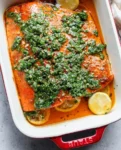 A simple yet flavorful dish featuring gently roasted salmon paired with a fresh and zesty za’atar salsa verde, perfect for weeknight dinners or special occasions.