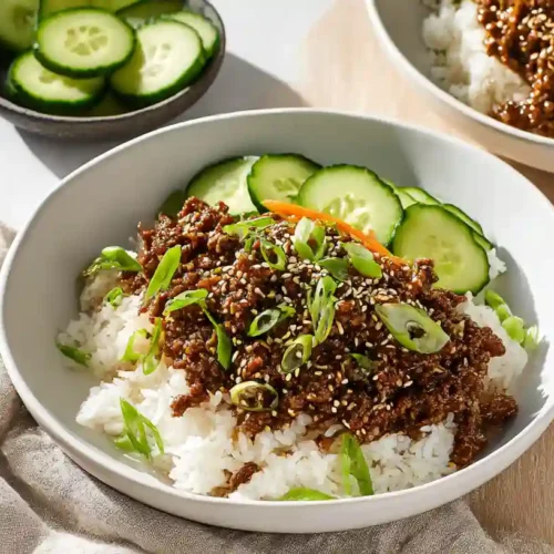A savory, slightly sweet Korean Ground Beef Bowl ready in just 30 minutes. Made with pantry staples and served over fluffy rice - perfect for busy weeknights.